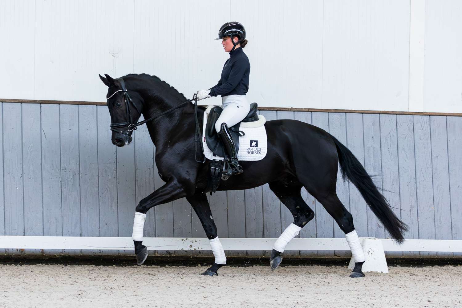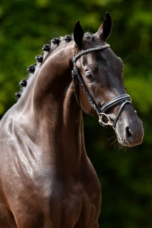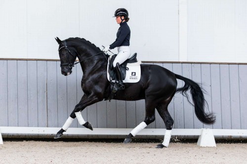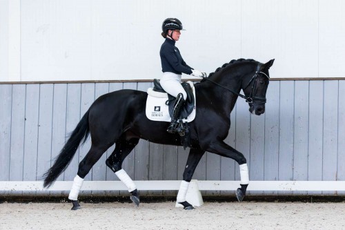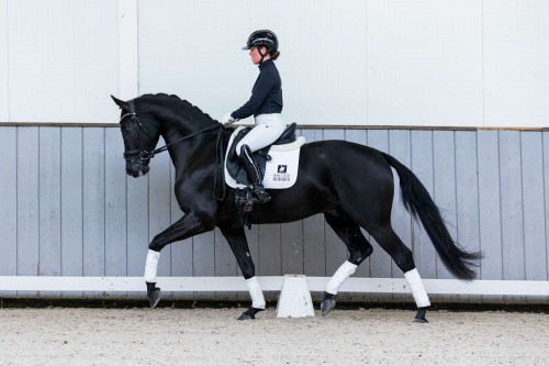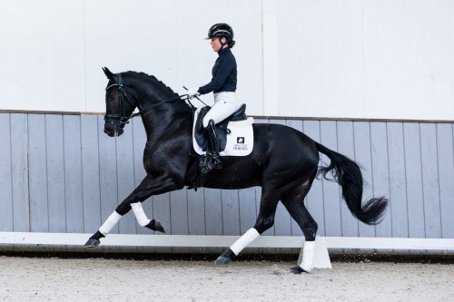 Roeber Groll is again a son of Lantanas, and he is also bred from a Glamourdale mare. At the studbook inspection in Den Hout, he managed to score 80 points for his exterior and trot. He has been ridden for about three months now and despite being a bit green he shows very good things. Roeber Groll is the first foal of the mare Moonlight Groll by Glamourdale. Moonlight Groll is a half-sister of the KWPN approved stallion Inclusive by Everdale who is also classified Grand Prix.