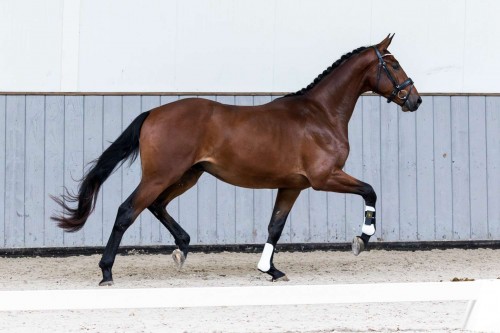 Secret Glamour is an impressive dressage horse and moves remarkably well. He is bred from the George Clooney mare Lost Gem who is a half-sister of the light tour horse Just Me by Everdale and the heavy tour horse Begijnhoeve’s Emerald by Wynton.